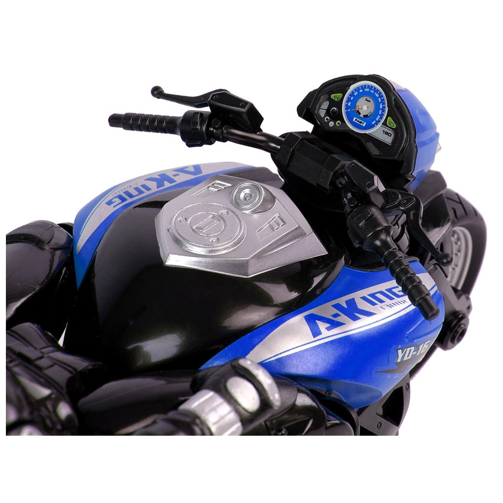 Motorka je vyrobena do velmi detailního provedení se všemi plastovými elementy a nálepkami, zatímco gumová kola zajišťují vynikající přilnavost k povrchu. Motocyklista na motorce má pohyblivé ruce, díky čemuž může uchopit řídítka na různých místech. Tato zábava je ideální pro každého, kdo miluje dynamickou jízdu!