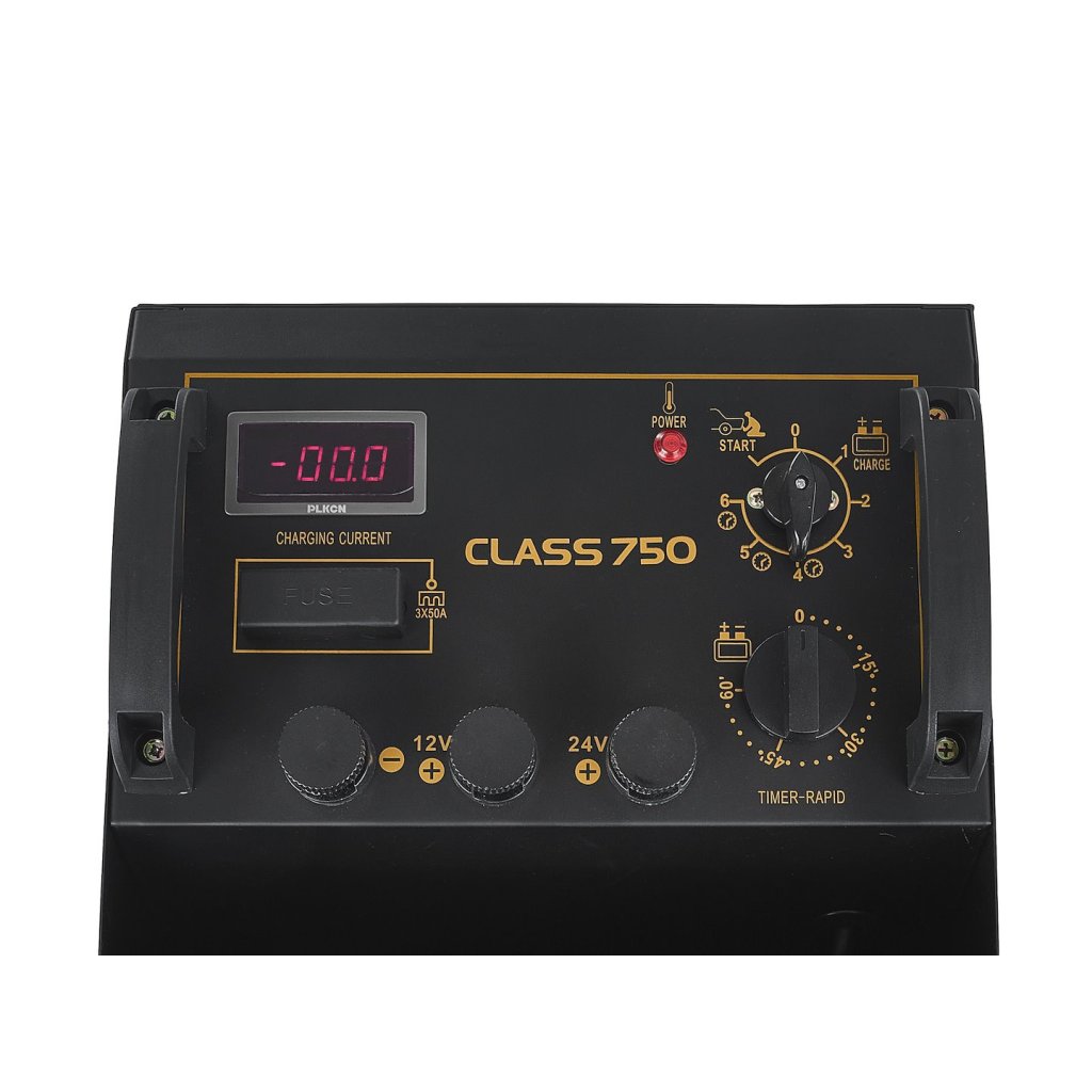 Class 750 je vybaven časovým spínačem, který po uplynutí nastavené doby automaticky vypne zařízení, a tím zabrání přetížení baterie při rychlém nabíjení. Je ideální pro podporu startování vozidel s benzínovými a dieselovými motory, jako jsou nákladní automobily, dodávky, zemědělské stroje atd.