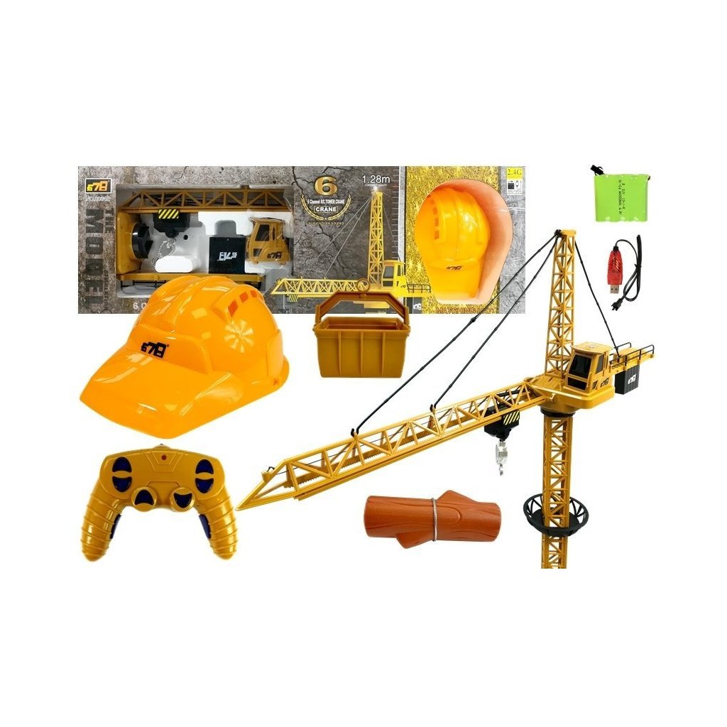 Hračka, dálkově ovládaný jeřáb, je skvělou příležitostí vyzkoušet si tuto roli. Je vysoký 128 centimetrů, což je výsledek budící respekt i u dospělých. Závaží lze zvedat a spouštět, jeřáb se pohybuje dopředu a dozadu a hlava se otáčí doprava a doleva. Jeřáb se ovládá pomocí bezdrátového ovladače, který zabraňuje zamotání kabelů při hraní. Hlavní část stroje je napájena akumulátorem, který se dobíjí pomocí USB kabelu dodaného v sadě. Součástí sady jsou také přepravované zboží a přilba stavebního dělníka!