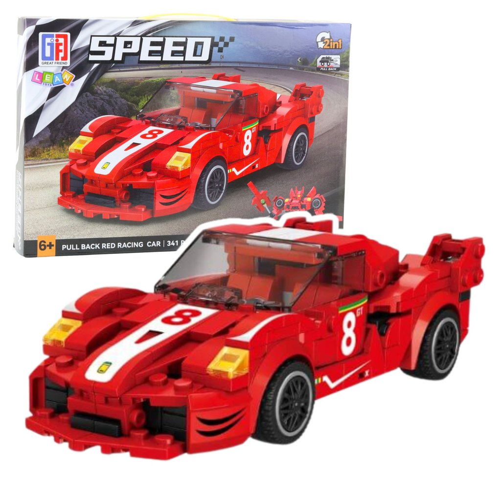 Stavební Kostky Auto Robot 2v1 Červený Pohon 341 ks