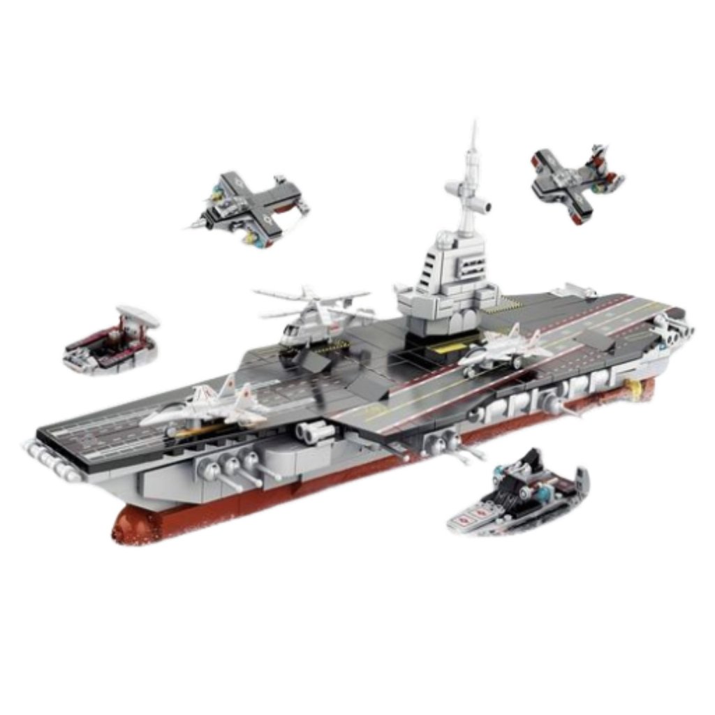 Stavebnice Letadlová Loď s Letadly 768 dílů Tento impozantní stavebnicový set umožňuje postavit realistický model letadlové lodi spolu s doprovodnými vzdušnými a námořními vozidly