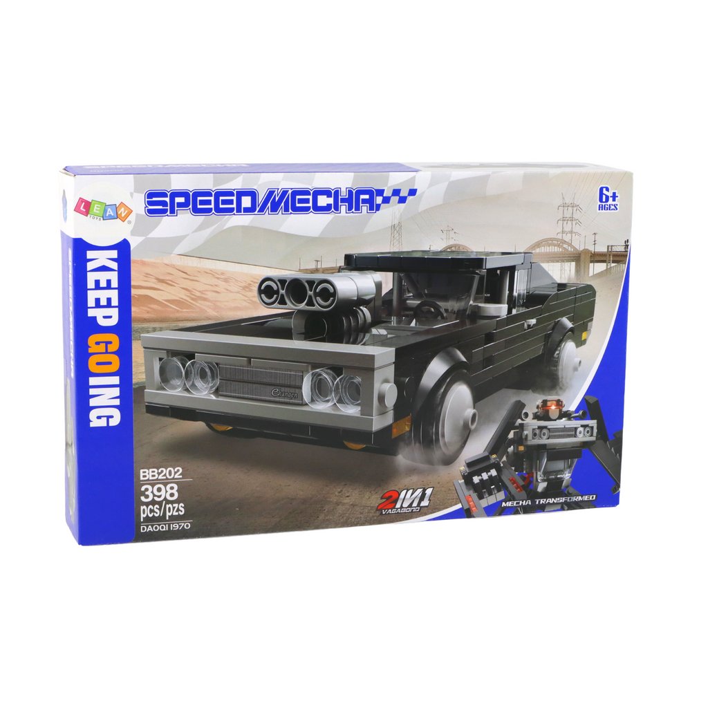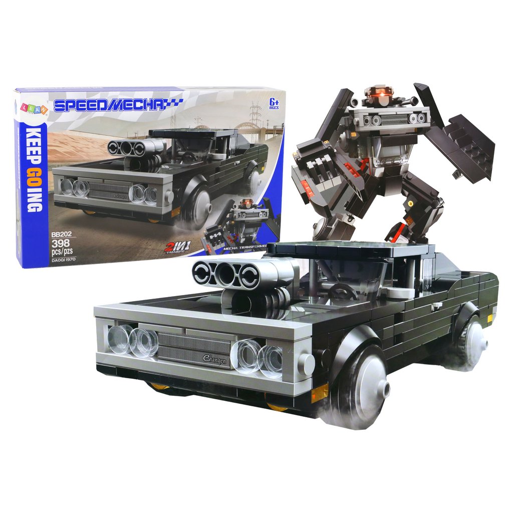 Stavebnice Auto Transformace Robot 2v1 Hračka je sada stavebních kostek složená z 398 dílů, ze kterých lze sestavit dvě různé konstrukce sportovní auto a robota