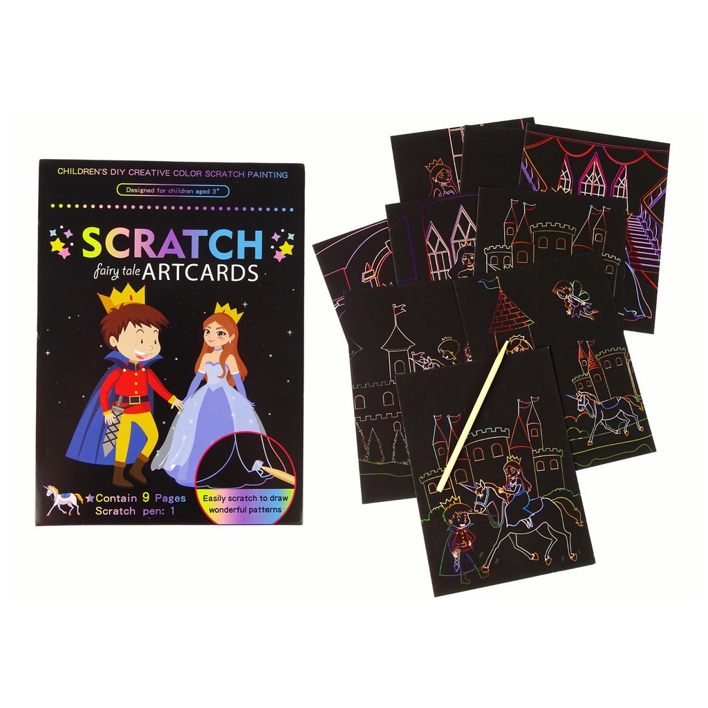 - Hra je jednoduchá: pomocí speciálního dřevěného tyčinky můžete škrábat černou vrstvu na obrázku a odhalovat krásné a barevné ilustrace