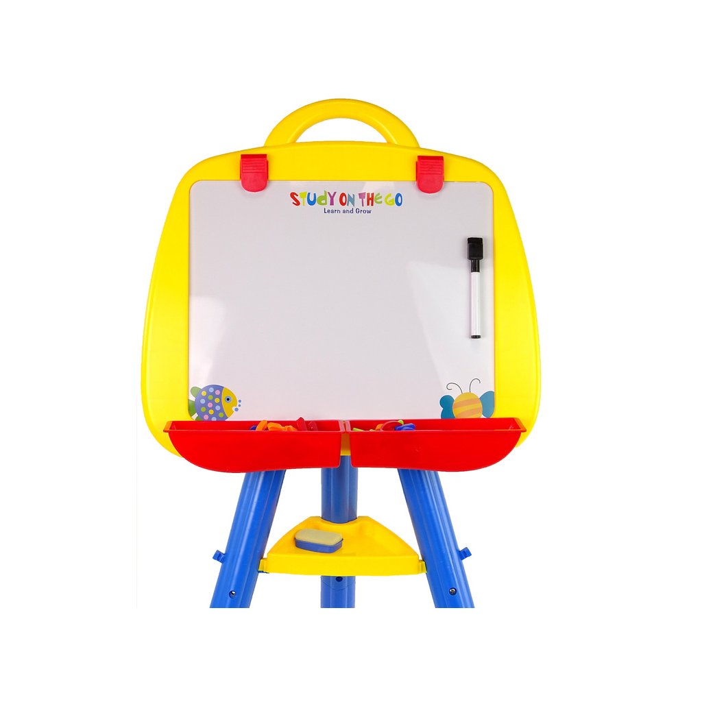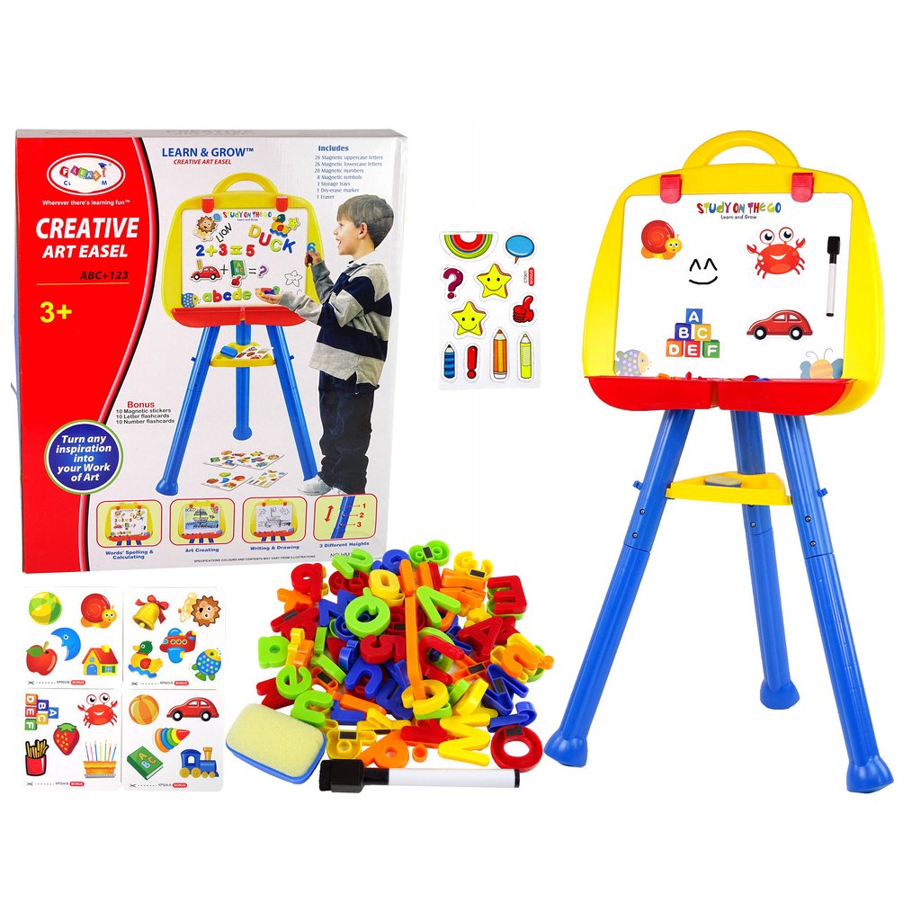 Magnetická tabule stojící, fixa, magnet, modrá Hra s magnetickou tabulí má skvělý vliv na vývoj každého malého dítěte! Podněcuje představivost a manuální dovednosti a také pomáhá naučit se kombinovat barvy nebo psát písmena a číslice