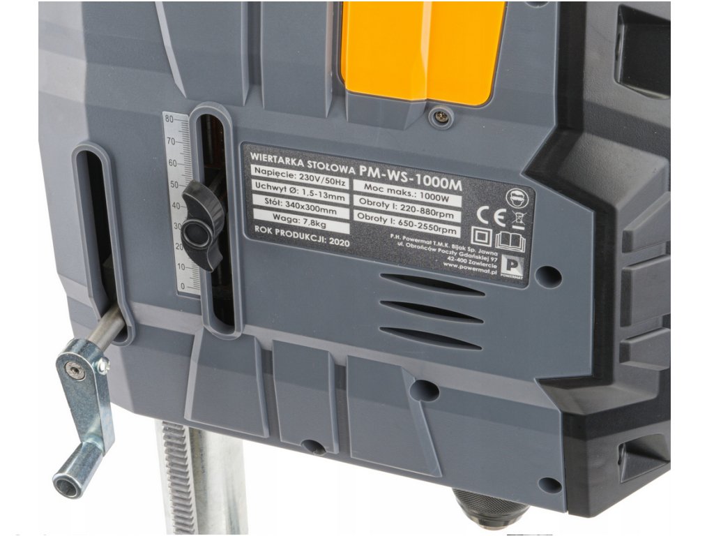 Robustní stolní sloupová (stojanová) vrtačka pro přesné vrtání do kovu i dřeva. Příkon 1000 W, dvourychlostní rozsah otáček 220–2250 ot/min a rychloupínací (samosvorné) sklíčidlo 1,5–13 mm pokryjí běžné i náročnější dílenské práce. Křížový laser a LED osvětlení zpřesňují navedení vrtu, svěrák v balení zajistí bezpečné upnutí obrobku .