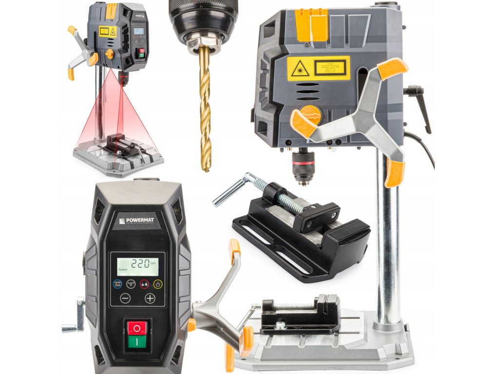 Stolní sloupová vrtačka 1000 W – se svěrákem, laserem a LED
