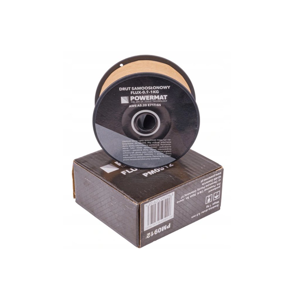 Samostínící drát s tavidlem o průměru 0,9 mm / 1 kg E71T-GS od společnosti Powermat je určen pro svařování běžných a vysoce pevných uhlíkových ocelí do 510 MPa.