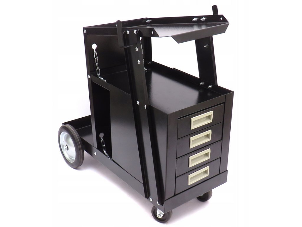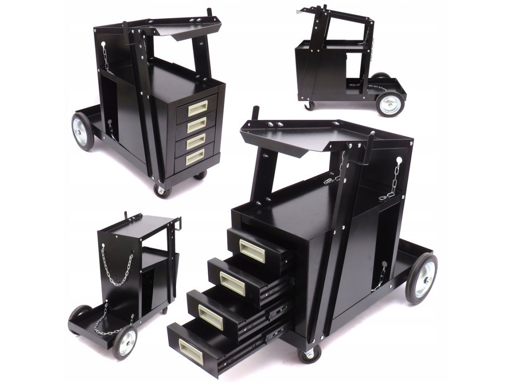 Praktický vozík pro MIG/MAG svářečky – udrží stroj, příslušenství i ochrannou láhev pěkně pohromadě. Ideální do dílny i garáže. 💪
