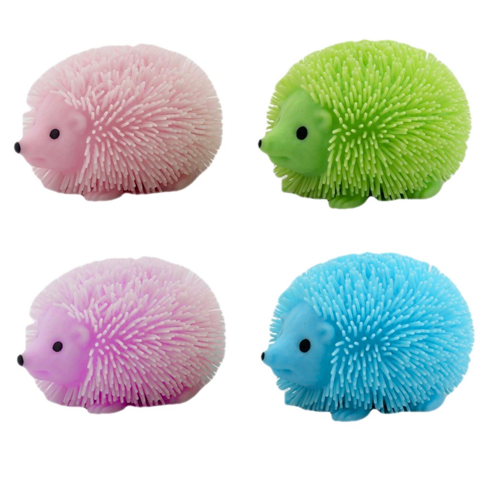 Tento produkt má integrovaný světelný mechanismus, který se aktivuje při úderu nebo stisknutí – barevné světlo uvnitř ježka bliká, což dále obohacuje zábavu. Hračka je ideální pro relaxaci, cvičení rukou, senzorickou terapii a jako příjemný gadget pro zlepšení nálady.