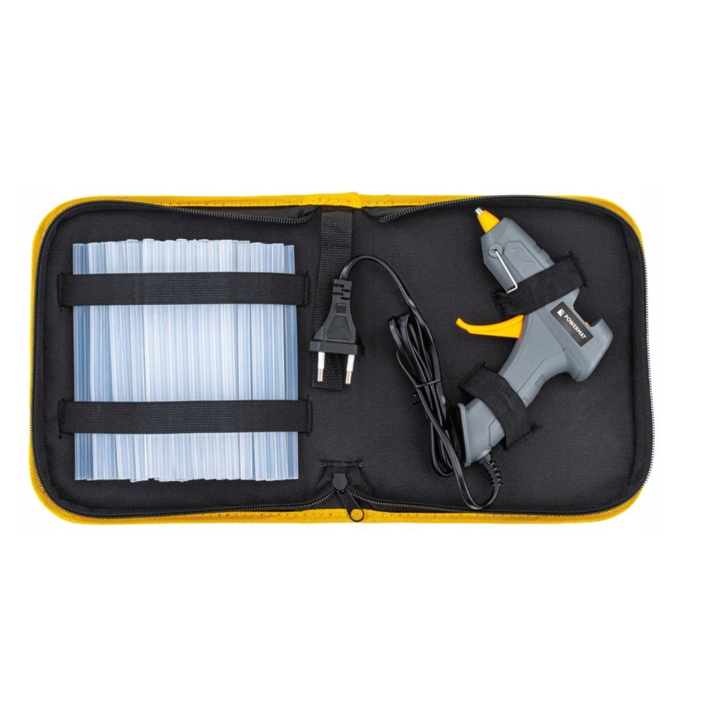 Pistole je určena pro standardní lepicí tyče o průměru 7 mm. V balení najdete také 10 kusů lepicích tyčí a praktické pouzdro pro přenos a skladování.