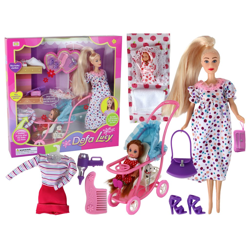 - Panenka Lucy v těhotenství, sada doplňků XXL Panenka Lucy má dlouhé, lesklé blond vlasy, které lze česat a upravovat podle libosti