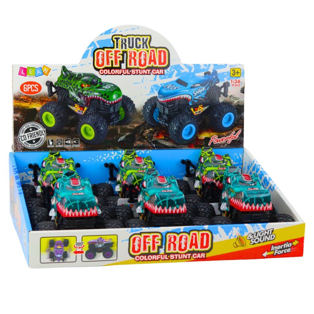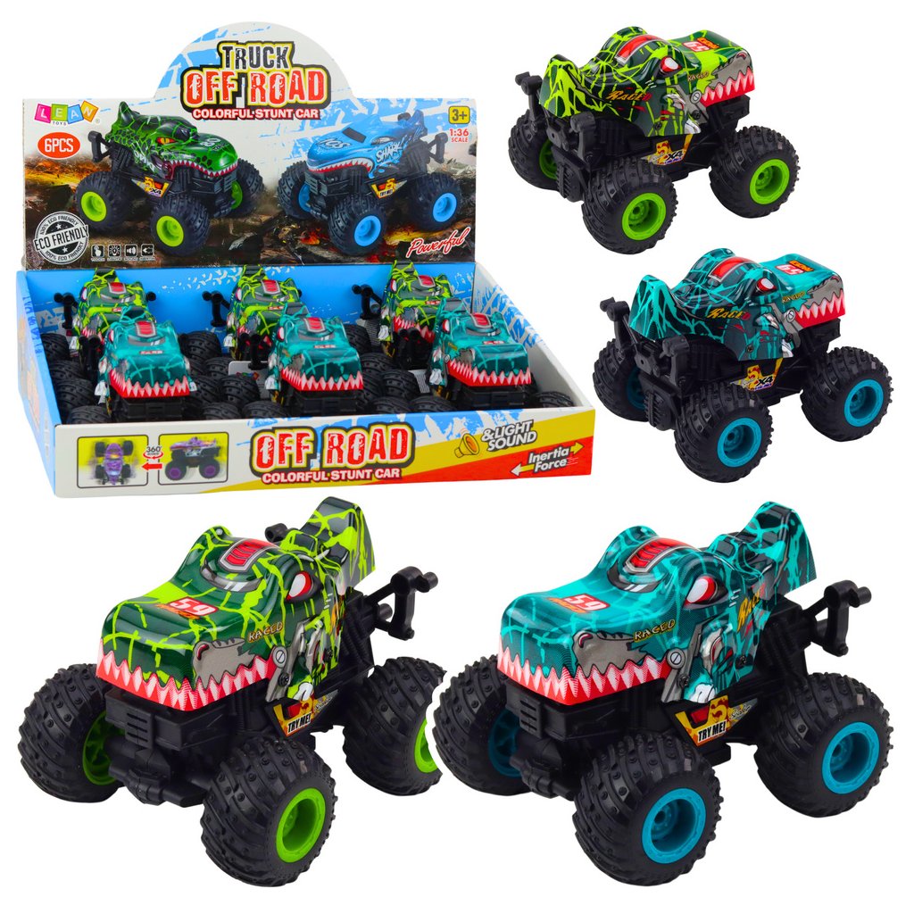 Terénní auto Dino s třecím pohonem, světlem a zvukem je efektní hračka navržena pro děti, které milují extrémní dobrodružství a neobyčejná vozidla.