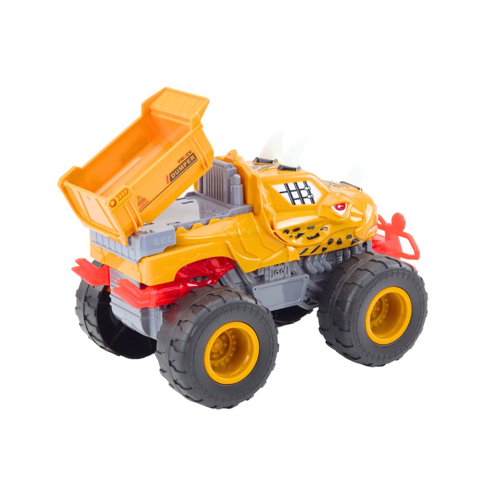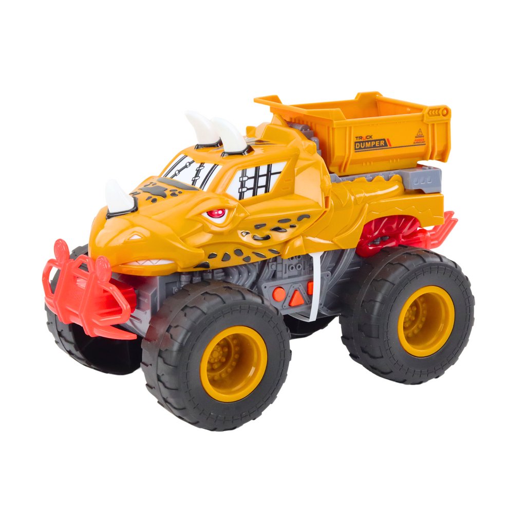 - Terénní Auto Dinosaurus s Frikčním Pohonem Sklápěčka Oranžové je výjimečné vozidlo, ideální pro malé nadšence dinosaurů a nejen pro ně