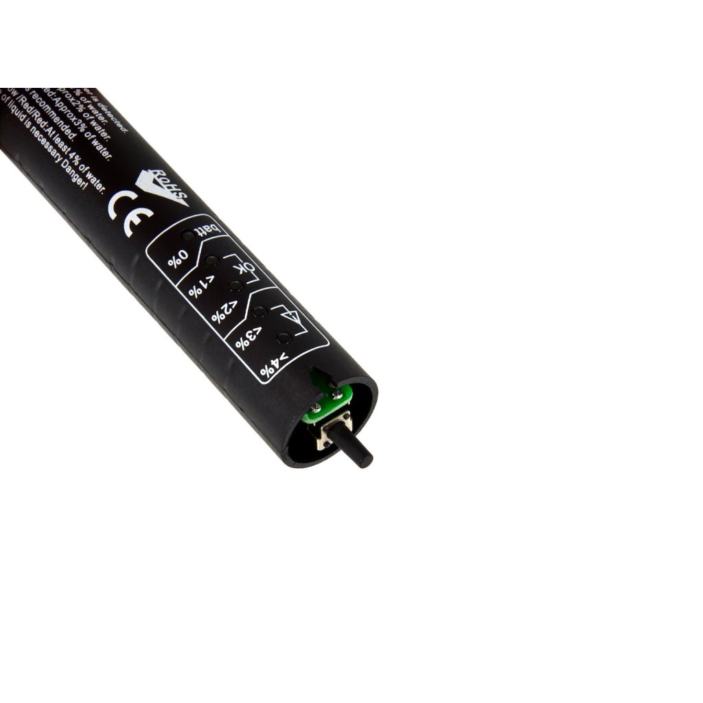 - zelená dioda – baterie v pořádku, obsah vody < 1 %