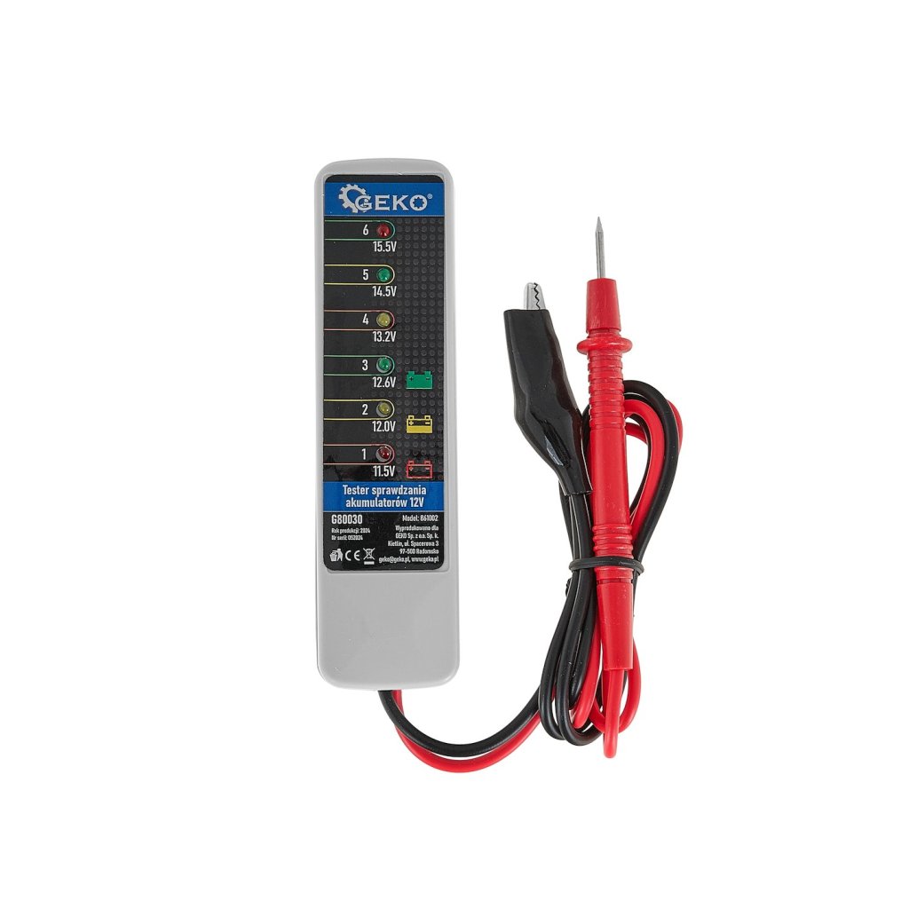 Tester baterií 12V je vybaven 6 LED diodami, první tři diody ukazují stav nabití baterie a další tři diody umožňují zkontrolovat stav alternátoru.