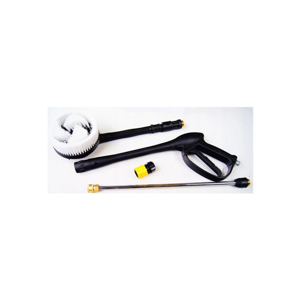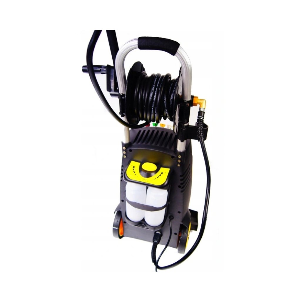 - Díky bohaté výbavě (trysky, kartáče, pěnový nástavec) a dlouhé tlakové hadici umožňuje pohodlnou a důkladnou údržbu různých povrchů