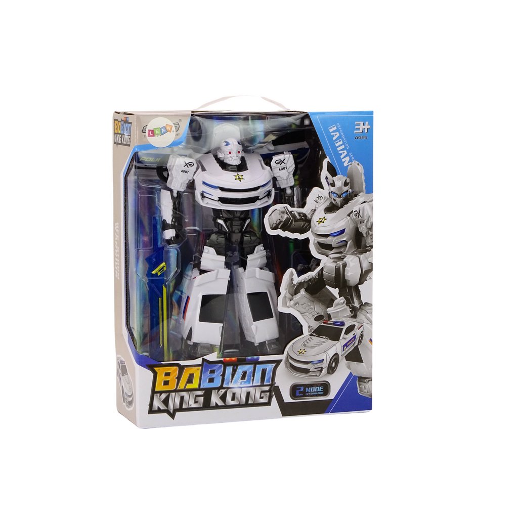 Transformerské 2v1 Policejní Auto-Robot v bílé barvě je výjimečný model policejního vozidla, který kombinuje eleganci a funkčnost, oslní jak děti, tak dospělé. V pečlivě zpracovaných detailech věrně napodobuje jak vzhled skutečného policejního auta, tak i sílu velkého robota. Toto unikátní spojení činí z této hračky jedinečný předmět, který zaujme každého nadšence technologie a pořádkových sil.