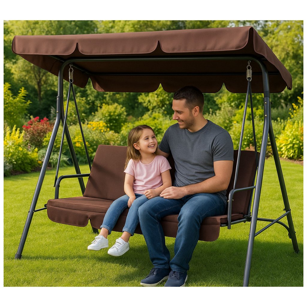 Třímístná zahradní houpačka s matrací, hnědá styl, pohodlí a bezkonkurenční relaxace