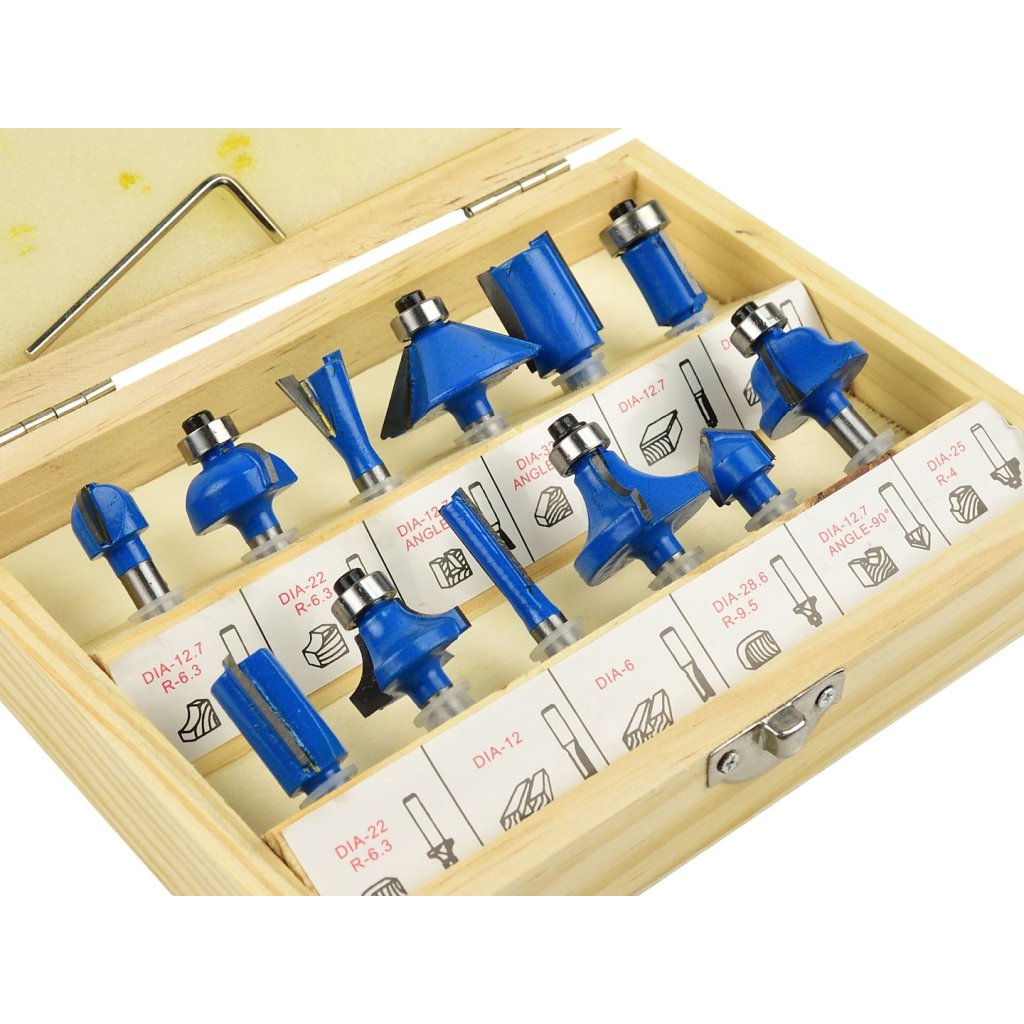 Sada 12 tvarových fréz na dřevo umožňuje přesné opracování materiálu. Čepele z rychlořezné oceli HSS umožňují použití fréz k opracování masivního dřeva, dřevotřísky, MDF a dalších dřevěných materiálů. Použitá ložiska snižují odpor při otáčení, proto jsou frézy ideální pro tvarování oblých materiálů. Celý sada je uložen v praktickém dřevěném kufříku, kde má každá fréza své označené místo.