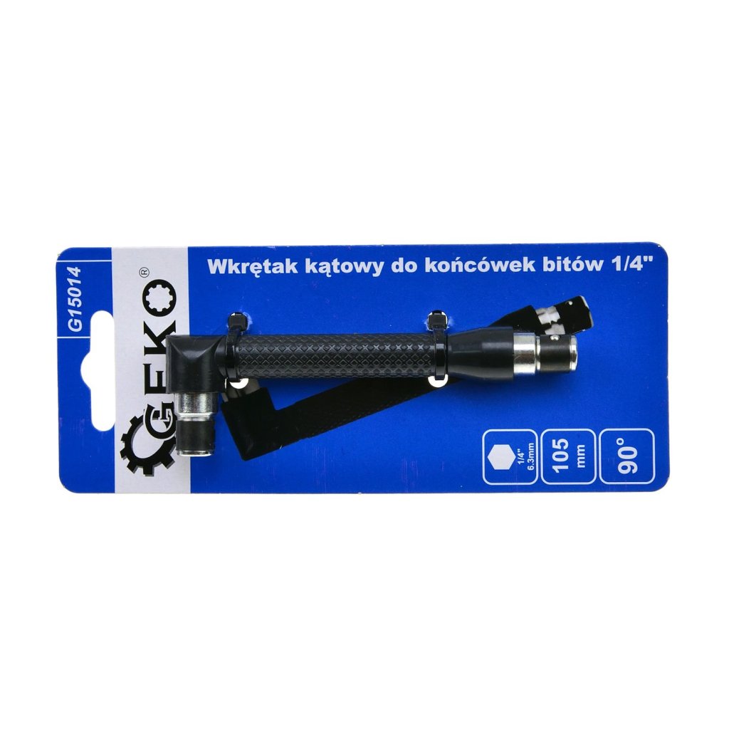 Úhlový šroubovák přizpůsobený pro bity velikosti 1/4”. Nezastupitelný v místech, kde kvůli omezenému prostoru nelze přímo použít šroubováky a ruční šroubováky. Vyrobeno z nástrojové oceli CrV.
