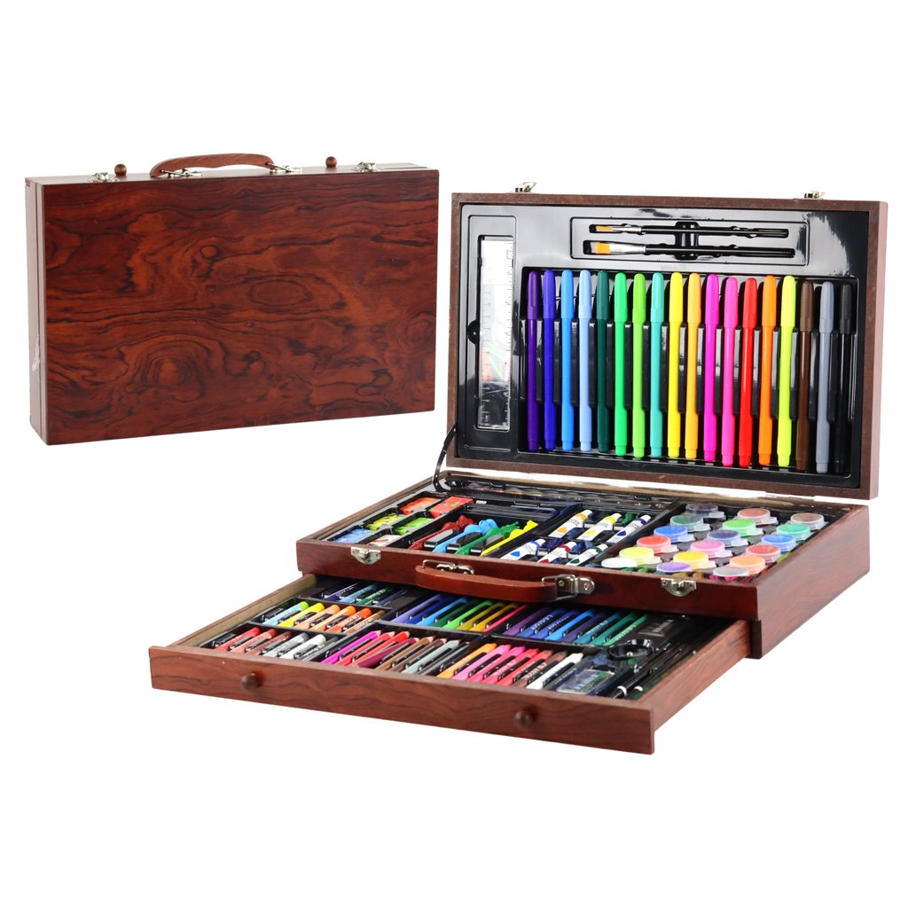 Umělecká Sada ve Dřevěném Kufříku 123 Prvků