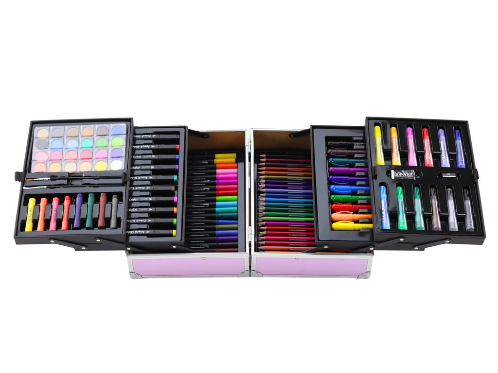 Představujeme vám uměleckou sadu ve skládacím kufříku s jednorožcem, která zaujme každého malého umělce a přenese jej do světa představivosti a tvořivosti! Tato sada obsahuje neuvěřitelných 133 různorodých prvků, které umožní vašemu dítěti vyzkoušet různé malířské a kreslířské techniky. V sadě najdete akrylové fixy, dvoustranné popisovače a fixy, které kombinují funkčnost tenkého a tlustého hrotu, což umožňuje kreslení jak přesných detailů, tak větších ploch.