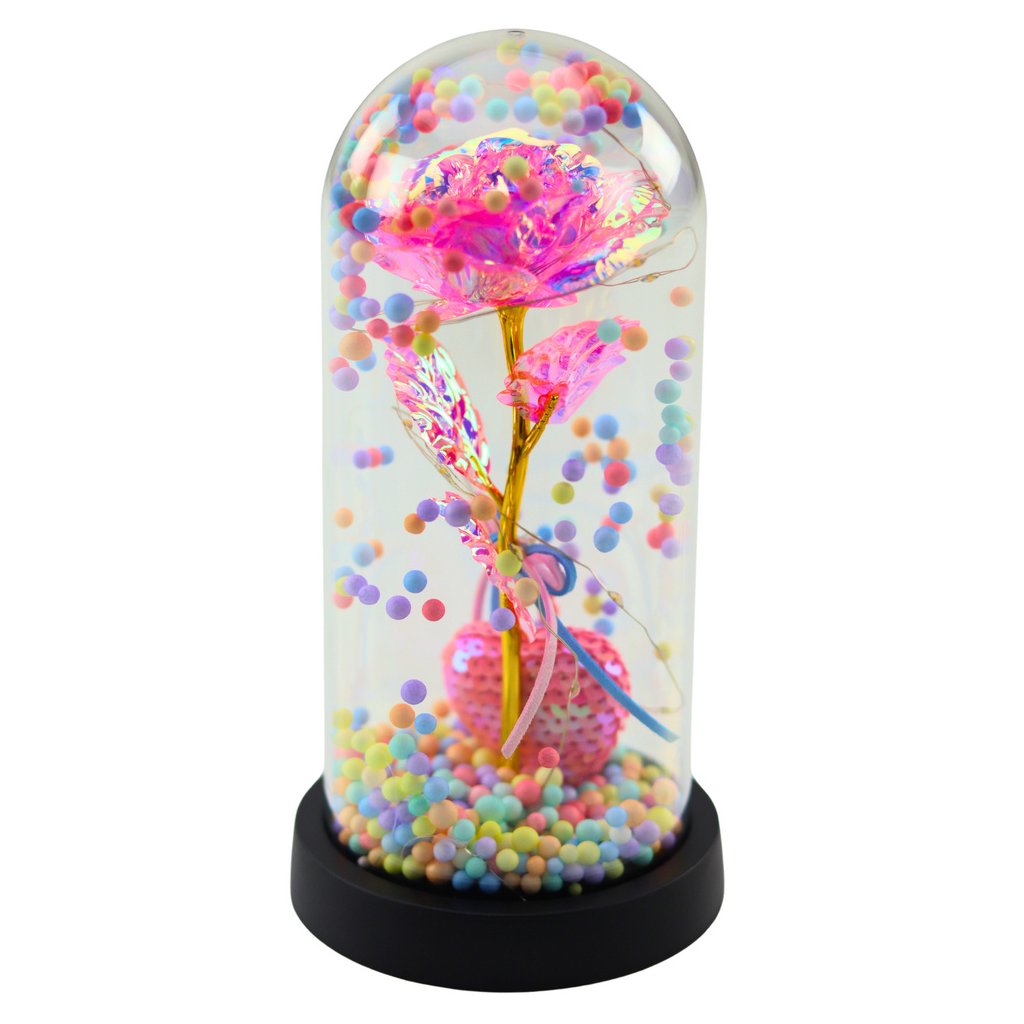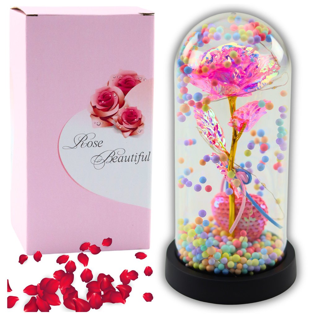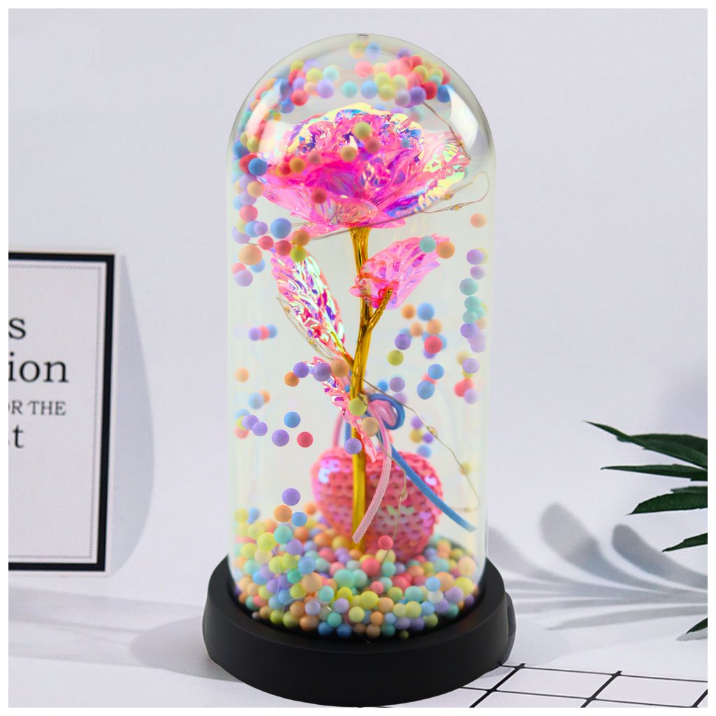 - Věčná růže ve skleněné kopuli s LED osvětlením růžová se srdíčkem a kuličkami je elegantní a symbolický dárek, který přidá unikátní atmosféru do každého interiéru