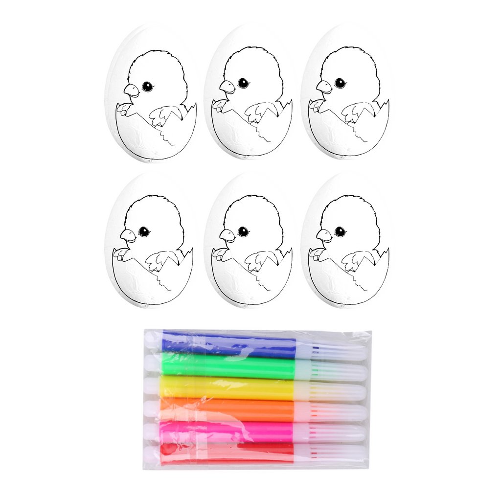 Set obsahuje 6 polystyrenových vajíček s motivem kuřátka ve vajíčku a fixy v různých barvách, což je ideální pro zábavu doma, ve škole nebo ve školce Klíčové vlastnosti produktu