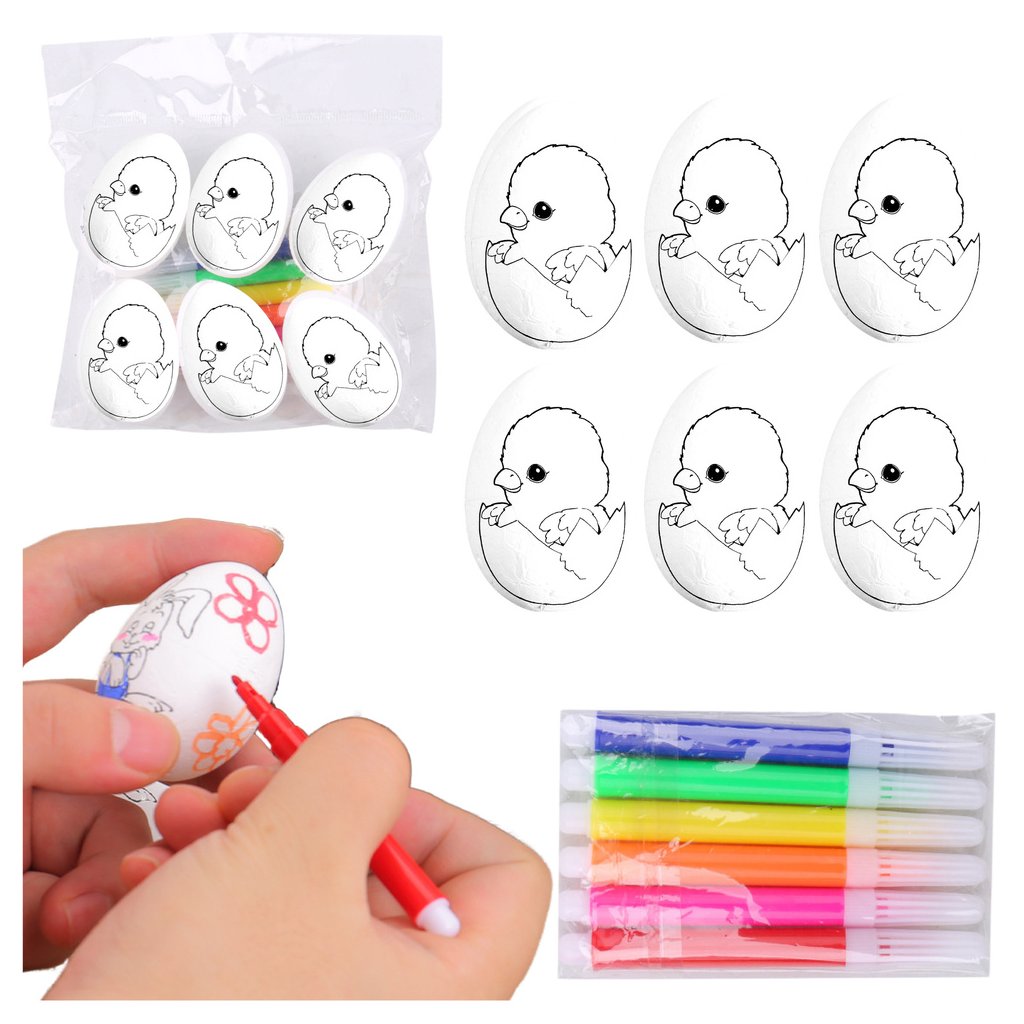 - Set obsahuje 6 polystyrenových vajíček s motivem kuřátka ve vajíčku a fixy v různých barvách, což je ideální pro zábavu doma, ve škole nebo ve školce