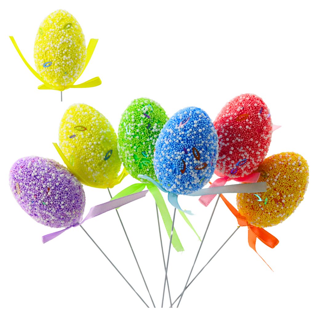 Velikonoční vajíčka na drátku v barevných vzorech jsou skvělým způsobem, jak vyzdobit váš domov na velikonoční svátky Každé vajíčko je pečlivě ozdobeno styroporovými kuličkami a malými vzory, což jim dodává jedinečný charakter