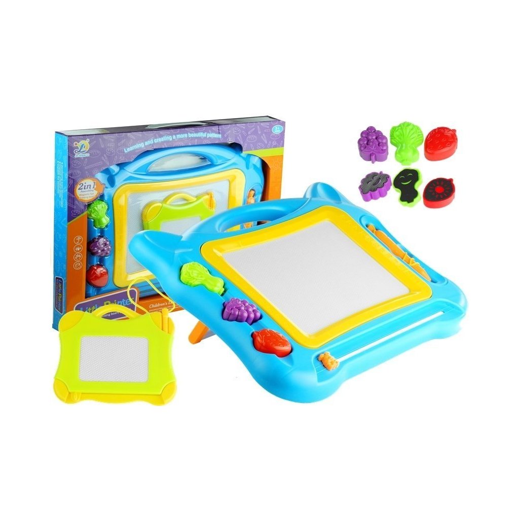 Velká magnetická tabule se razítky a menší tabulkou Magnetická tabule je skvělá hračka, kterou pravděpodobně znají všichni děti, jejich rodiče i prarodiče