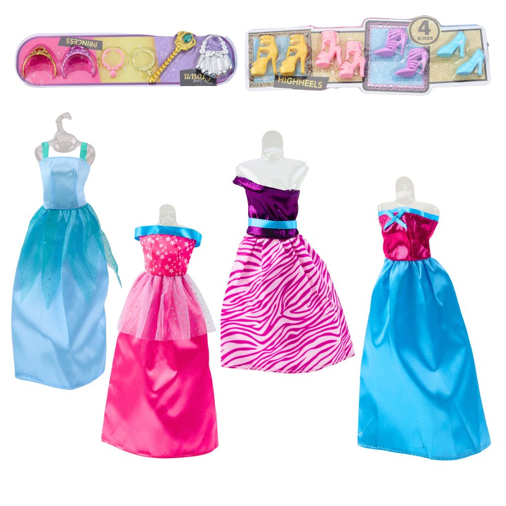 - Kromě bohatého šatníku sada obsahuje také 4 páry bot a stylové doplňky: 2 koruny