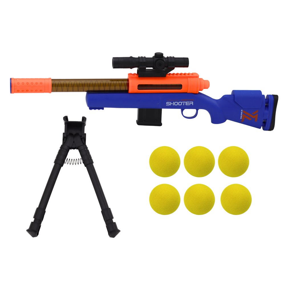 Velká puška na měkké kuličky se stojanem a teleskopem modrá