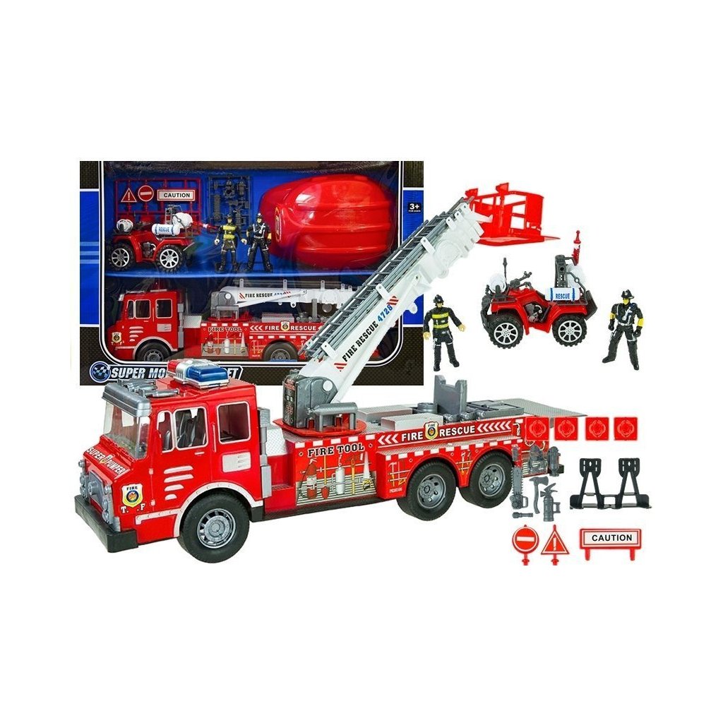 - Kompletní zážitek: Sada obsahuje také čtyřkolku, dvě figurky hasičů a výstražné kužely, které činí hraní ještě zábavnější.