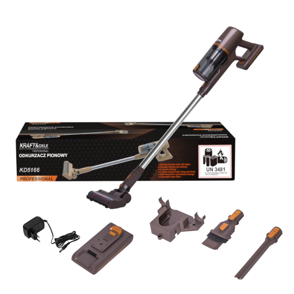 - Mocowanie Na ścianę Obsah balení: ✅ Odkurzacz pionowy KD5166 ✅ Elektryczna szczotka ✅ Szczotka do sof 2w1 ✅ Długa końcówka do szczelin ✅ Akumulator 2500mAh ✅ Zasilacz ✅ Uchwyt na ścianę ✅ Návod k použití w języku polskim ✅ Záruka 12 miesięcy