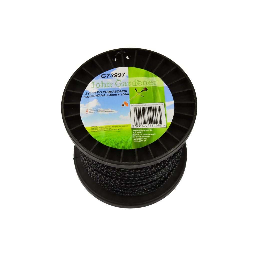 Řezací struna určená pro benzínové kosačky a elektrické vyžínače. Zoubkovaná struna se čtvercovým průřezem, průměrem 2,4 mm a délkou 100 m je vyrobena z vysoce odolného plastu.