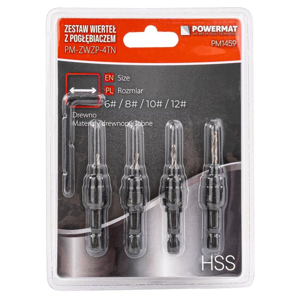 Sada vrtáků do dřeva se zahlubovačem POWERMAT PM-ZWZP-4TN obsahuje pět vrtáků v průměrech 6–16 mm, které jsou určeny pro přesné vrtání otvorů do dřeva, překližky a dalších deskových materiálů. Každý vrták je vybaven středicím hrotem, který zajišťuje přesné navedení a zabraňuje sklouznutí při začátku vrtání.