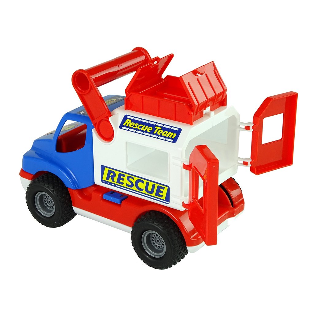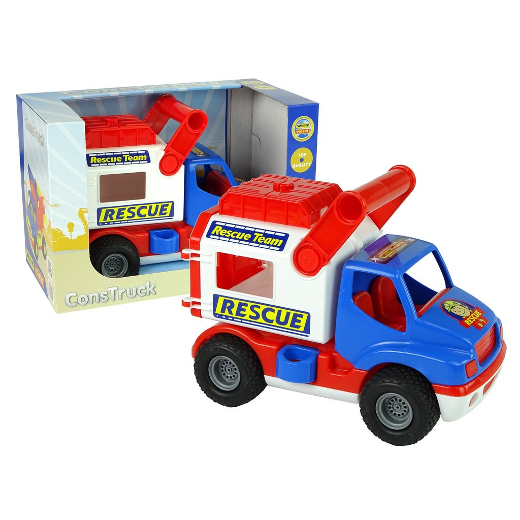 - Představujeme vám úžasné Záchranné Vozidlo Auto ConsTruck v působivé modro-bílé barevné kombinaci od značky Polesie!