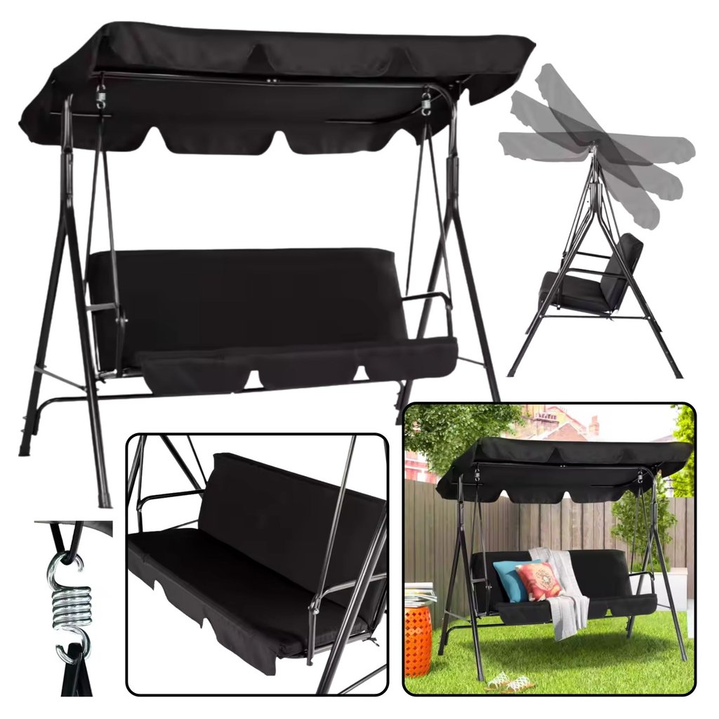 - Užijte si relaxaci na čerstvém vzduchu s zahradní houpačkou pro tři osoby s matrací, černá
