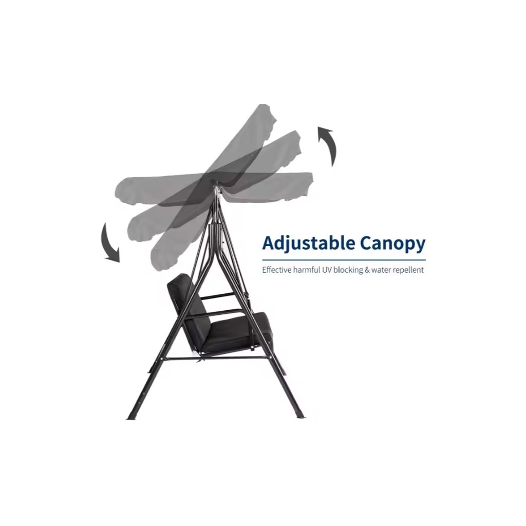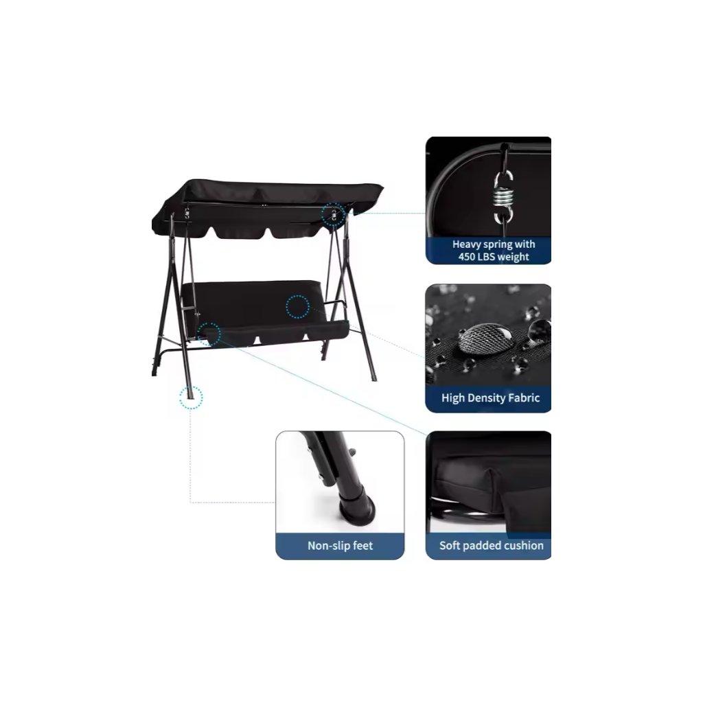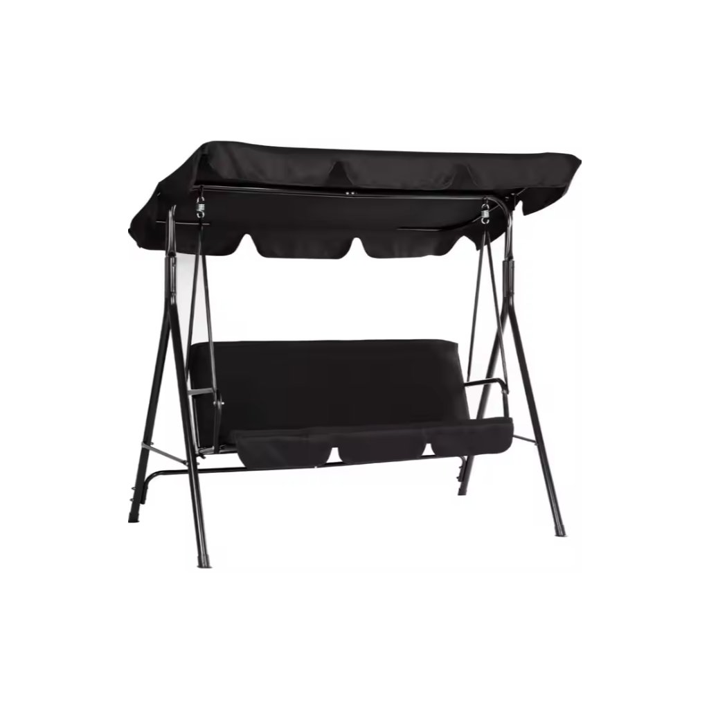 Zahradní houpačka pro tři osoby s matrací, černá je výjimečná forma relaxace spojující komfort, funkčnost a moderní styl Černá zahradní houpačka je určena pro všechny, kdo oceňují pohodlí a estetiku venkovního prostoru
