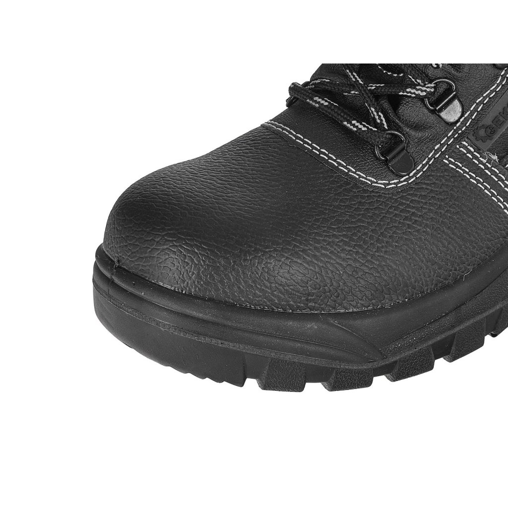 - Ocelová špička: Poskytuje účinnou ochranu prstů před nárazy a stlačením, čímž minimalizuje riziko zranění. Špička splňuje požadavky normy EN ISO, což potvrzuje její vysokou odolnost.