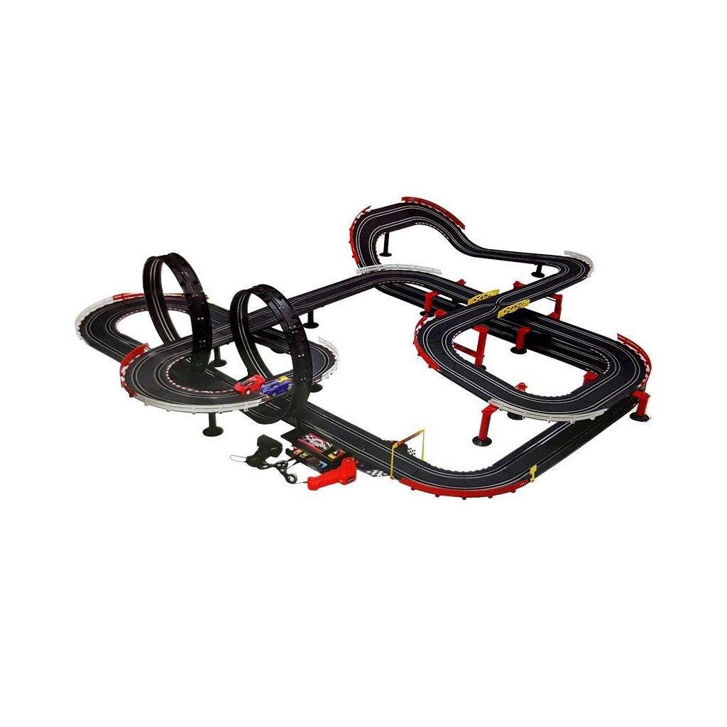 Závodní dráha s autíčky je skvělou volbou pro všechny malé milovníky rychlých vozů a adrenalinu! S impozantní délkou 1420 cm se realistický závodní okruh stane zábavním centrem každé dětské pokoje. Tento velký Slot-Car set se odlišuje od ostatních závodních drah speciálním povrchem s vodicími lištami, které zajišťují plynulý pohyb autíček.