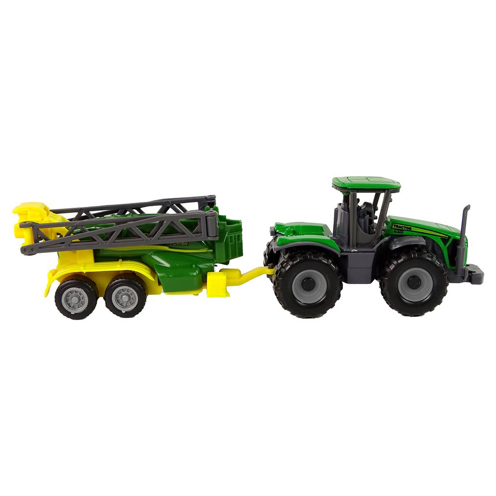 Krátký popis produktu: Zelený zemědělský traktor s postřikovačem pro realistické hraní na farmě, vyrobený z odolného plastu, vhodný pro děti od 3 let.