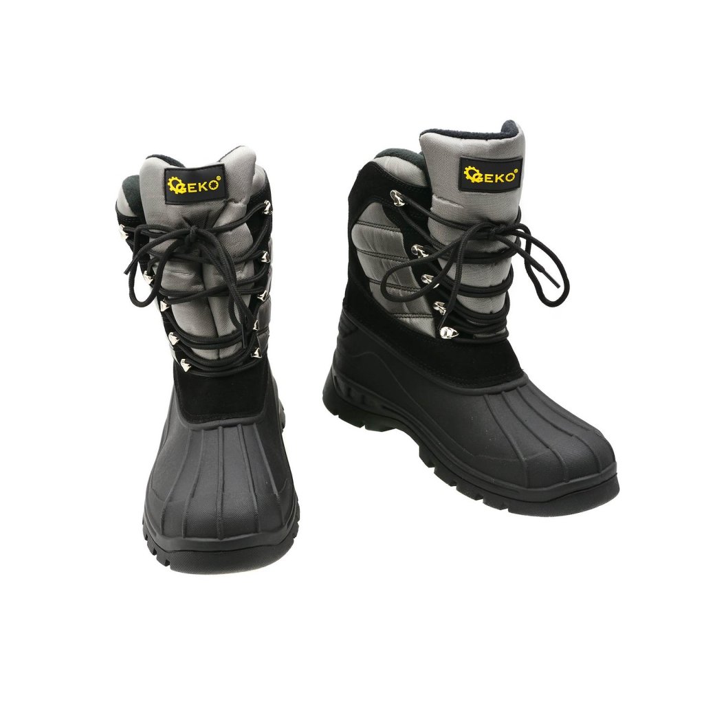 Vodotěsné boty „sněhule” renomované značky GEKO. Spodní část svršku a podešev jsou vyrobeny z vysoce kvalitního termokaučuku, který se vyznačuje velmi dobrou přilnavostí a díky své vysoké elasticitě neomezuje pohyby a neklade odpor při ohýbání.