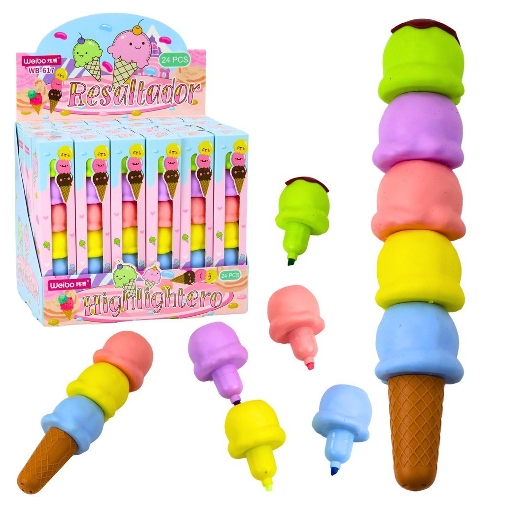 - Odhalte kouzlo učení se se zvýrazňovači ve tvaru zmrzlinového kónusu, sadou, která promění každodenní úkoly v zážitek plný zábavy a kreativity