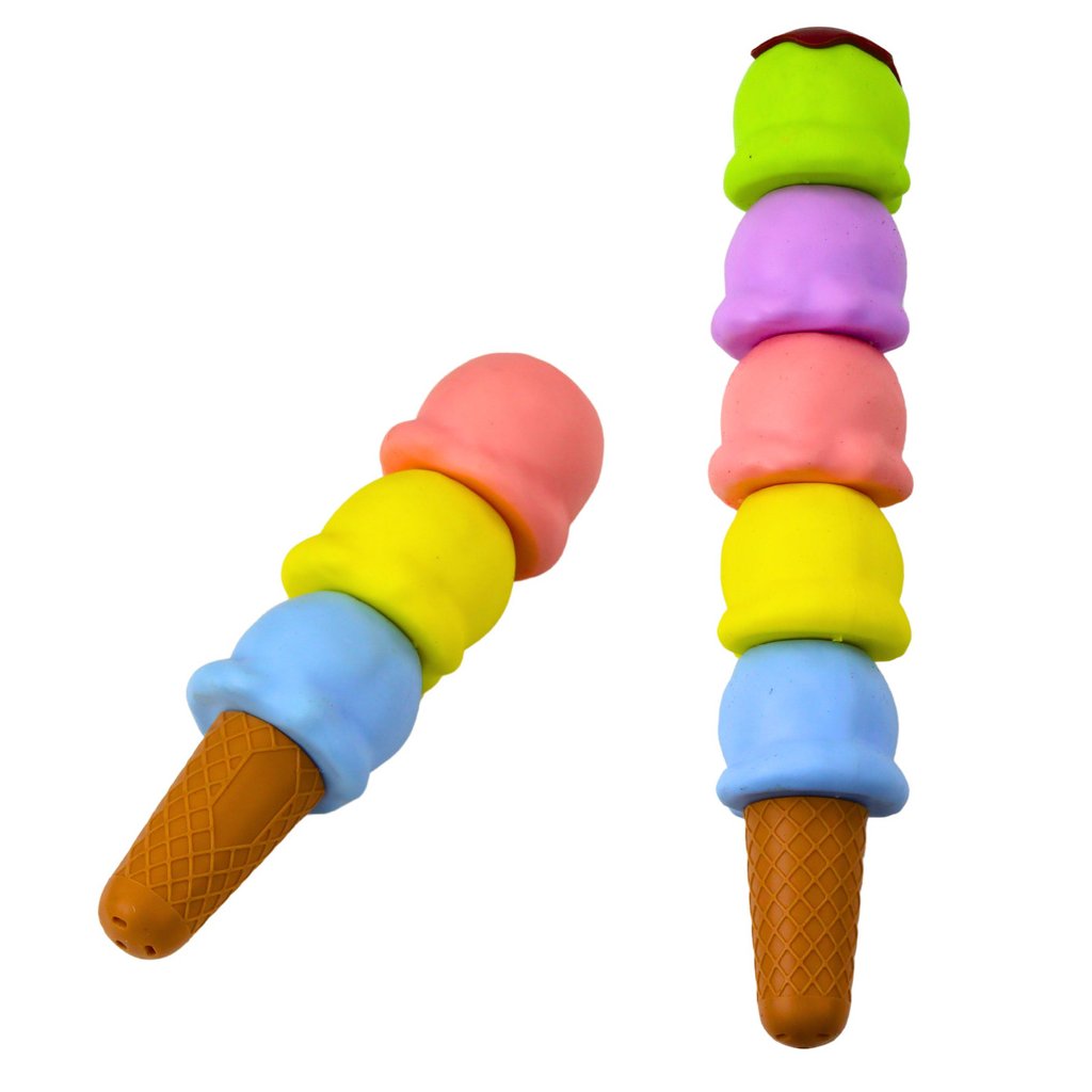 - Každý zvýrazňovač je navržen ve formě barevné zmrzlinové kuličky, kterou lze na sebe vrstvit, čímž vytvoříte působivý kónus zakončený vaflovým kornoutem